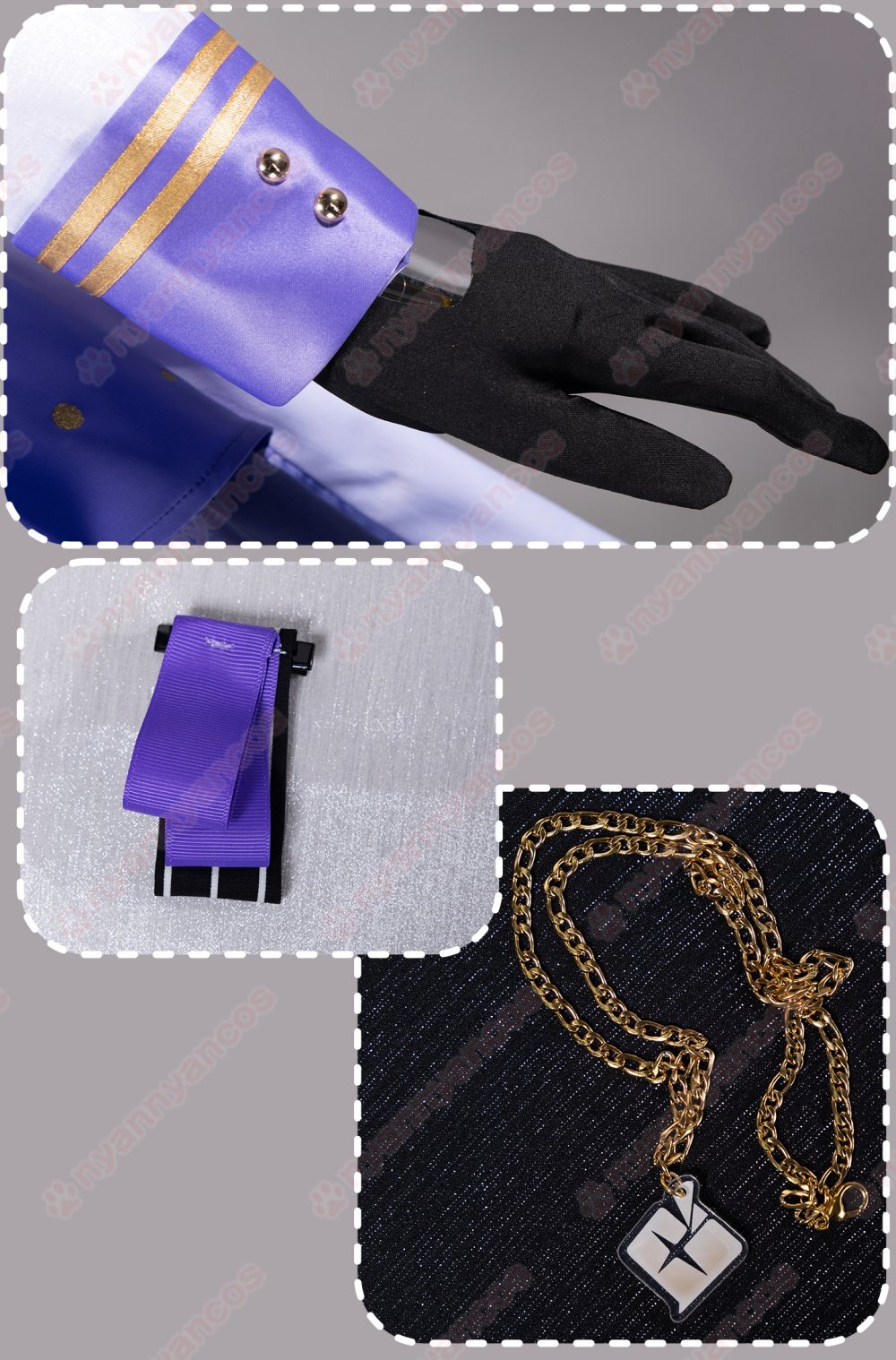 【セット内容】ジャケット、スカート、シャツ、リボンタイ、手袋*2、髪飾り、ネックレス、バッジ、チェーン、腰巻*2